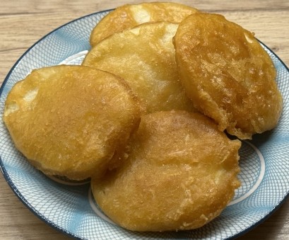 Called Scallops in many areas of the UK, Chippy Potato Fritters are slices of cooked potato dipped in batter and fried in hot oil. Liberally doused in salt and vinegar to serve.