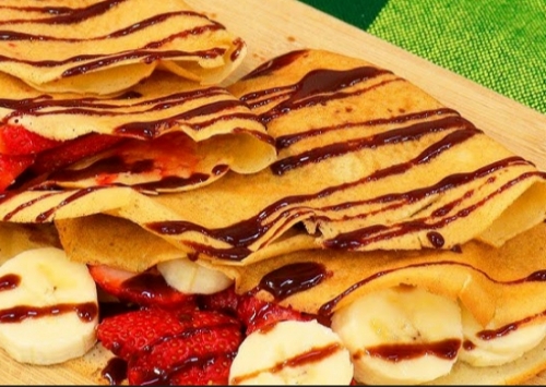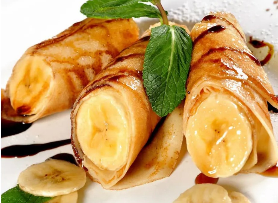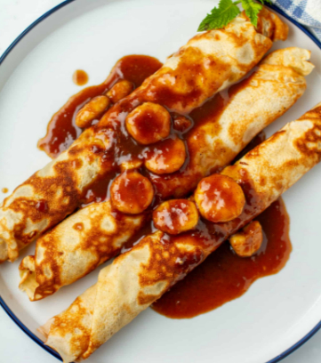 3. Fill the crepes with the bananas and drizzle the sauce on top.
