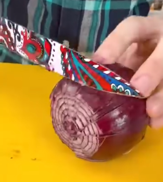 - Score the onion in downward cuts according to thickness wanted.