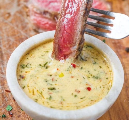 Blue cheese sauce is a bold, creamy, tangy sauce with a hint of garlic that’s easy to whip up while your steak is resting.