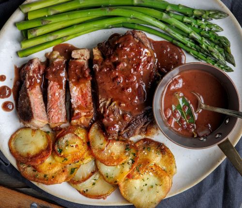 A classic steak with sauce is best achieved by pan-searing the steak in a hot pan (using butter/oil) and making a pan sauce while it rests. See below for 6 popular, quick, 5-minute sauces.
