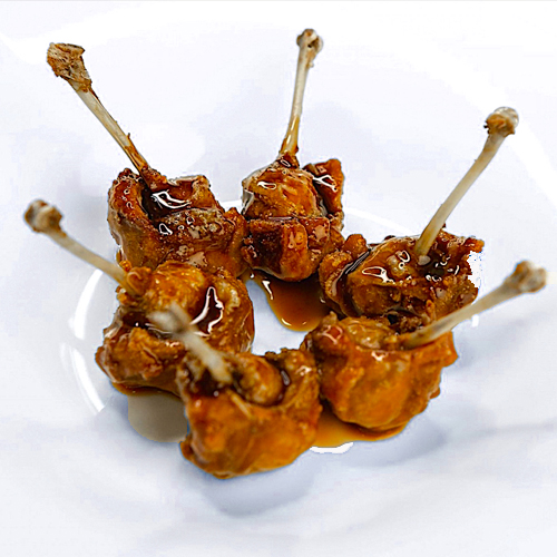 Often served in Tenerife as a New Year’s Day tapa (Chupachups de Codorniz con Salsa de Frambuesa), this dish offers a delicious flavor and vibrant color.