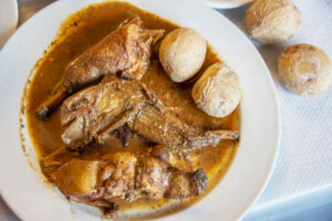 Rabbit in salmorejo is one of the most iconic dishes in Canarian cuisine, particularly in Tenerife, where it is a staple at popular festivities, pilgrimages, and family gatherings.